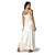 A camisola, em cetim dull, é longa, tem caimento reto, alça fina, fenda e cor off white.