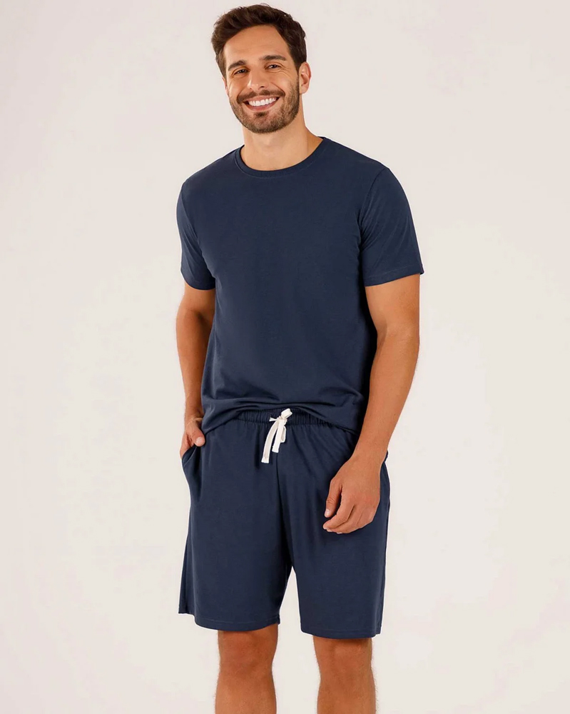 Para quem gosta de um pijama liso mais sem perder comforto e estilo, essa é a peça ideal! Confeccionado em malha 100% algodão é um pijama super versátil para usar durante o dia ou nas noites de descanso. Blusa com decote redondo e modelagem tradicional. Bermuda com cintura de elástico 4cm e amarrador funcional em cadarço de algodão trançado contrastante. Bolso embutido na lateral da bermuda. Conjunto acompanha embalagem multifuncional para você levar onde quiser.