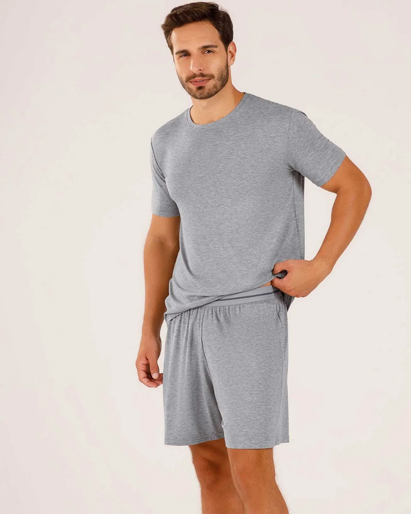 Pijama manga curta masculino todo em malha visco comfy mescla com toque leve e super confortável, bermuda mais reta com o cós em elástico personalizado de listra, dando um ar mais esportivo e moderno! Disponível em duas variantes de cor.
